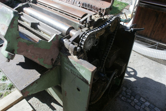 výtvor vpravdě divotvorný, kdysi, před lety, jsem začal se stavbou hoblovky, později se z toho stala taková oblíbená kratochvíle na různé sváření, leštění, no prostě strojaření. Časem jsem sehnal protahovací ústrojí z továrního stroje, kterému ovšem zase chyběly dva domečky, ty jsem nechal dělat na zakázku, stroj do budoucna bude umět i dlabat, když se mu dodá patřičný stůl tedy...pozn.08-2011, teď se ho ač nerad, ale není jiná možnost, zbavuji.