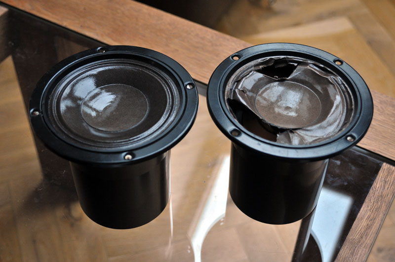 výměna zničeného ARP za středobasový visaton W300-S, doplnění samostatného kastlíku pro vistóna a výroba krycích rámů s průzvučnou tkaninou - ostatně celá výměna je právě z důvodů, že od doby výroby se malinko změnila ta skutečnost, že k reprákům nyní choděj i takoví malí pupíci, tedy moje děti, pro které v jistém věku někdy mezi 2 a 3-tím rokem rozhodně bylo nejlepší zábavou dloubat prstíky do kopulky výškáče a nevím z jakého důvodu si vybraly za cíl i jednu membránu právě onoho inkriminovaného, neštastného ARP-čka. A to jejich neúnavnému snažení podlehlo oddělením a rozpáráním membrány od závěsu téměř po celém obvodu...Jestli budu do budoucna něco vyrábět, jakože asi budu, jak se znám, tak bych rád měl doma rád něco trošku údernějšího. Ne že by tyhle nehrály odspoda, naopak při produkci černé muziky, kterou jsem párkrát také zkusil, kde je nizkých frekvencí habakuk, nebo filmového zvuku si basák krásně chrochtá blahem a třese se dům v základech. Ovšem při zakoupení jednoho ze zesíků mi byl tento předváděn v kombinaci se stařičkou, nevzhlednou reprobednou ze 70-tých let, ale s pěkně rozměrným basákem, odhaduji to tak na 15" průměr a tam byl pocit bicích, jak kdyby vám kopal bubeník přímo do žaludku. Což není sice přijemné, pokud vám to dělá nějáký géza kdesi v tmavém podchodu, ale u té rockové muziky a ještě na koncertu je to paráda. Tak proč si to občas nedopřát i doma ..ale to mi asi moje manažerka volného času neschválí...