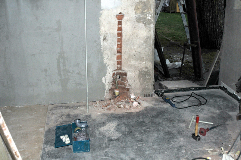 čabík tahal lepidlo ještě a pak dělal štuky. Udělali jsme spolu jeden metr čtvereční finálky, co chyběl na vnější fasádě k sousedovi. Já jsem mezitím řezal dříví, předělal provizorně elektriku a připravoval jsem ke svaření nosník na těžkou polici